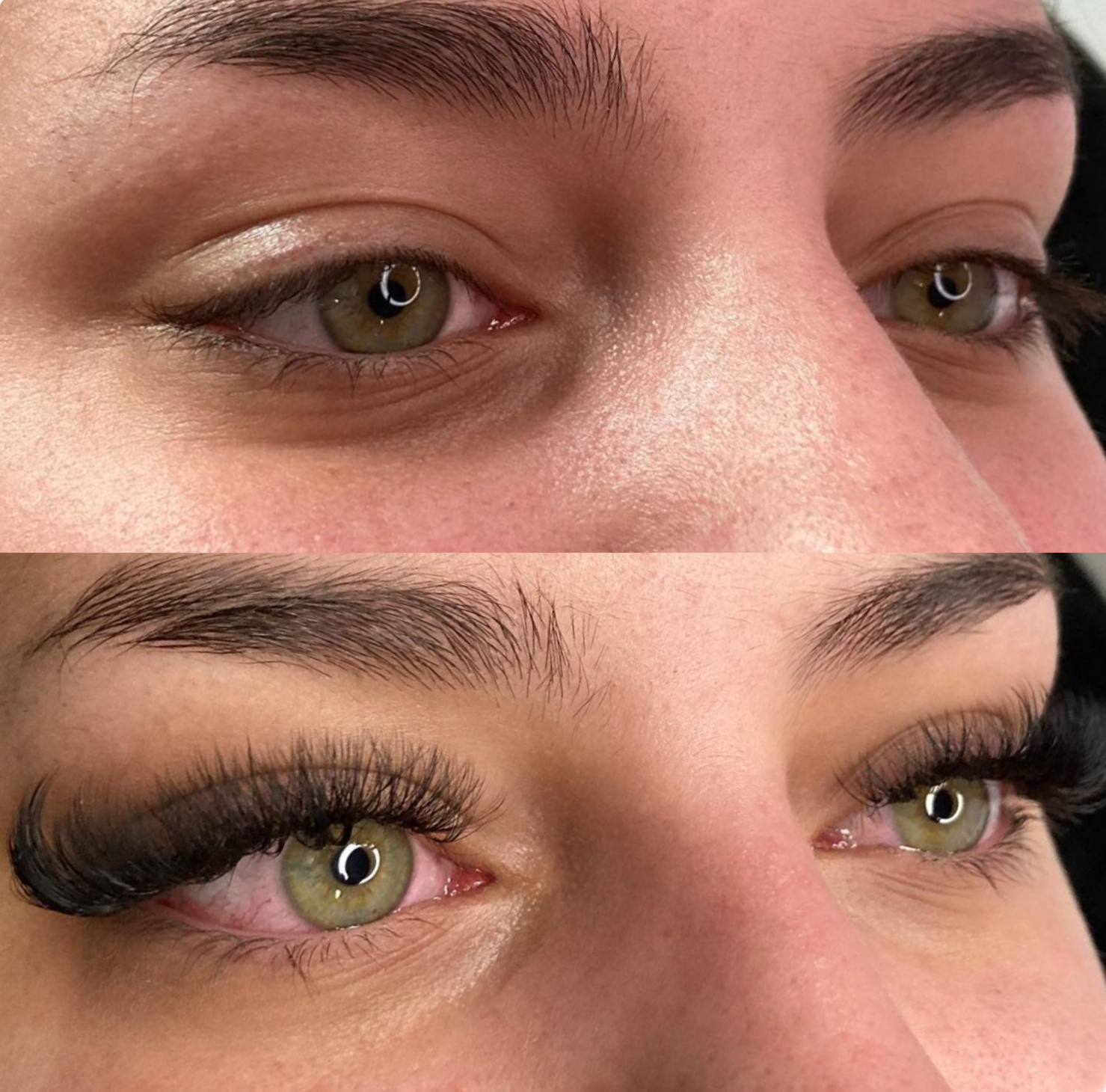 A hybrid set combines 50% classic lashes and 50% volume lashes, giving you a textured, fuller look that enhances your natural lashes. Check out our Gallery for examples!